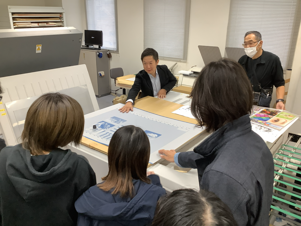 今回の工場見学で、制作活動のアウトプットの方法の一つに、印刷表現があることを知ってもらい、表現の幅を少しでも広げてもらえることを願っています。
