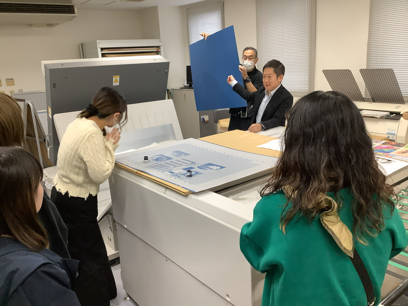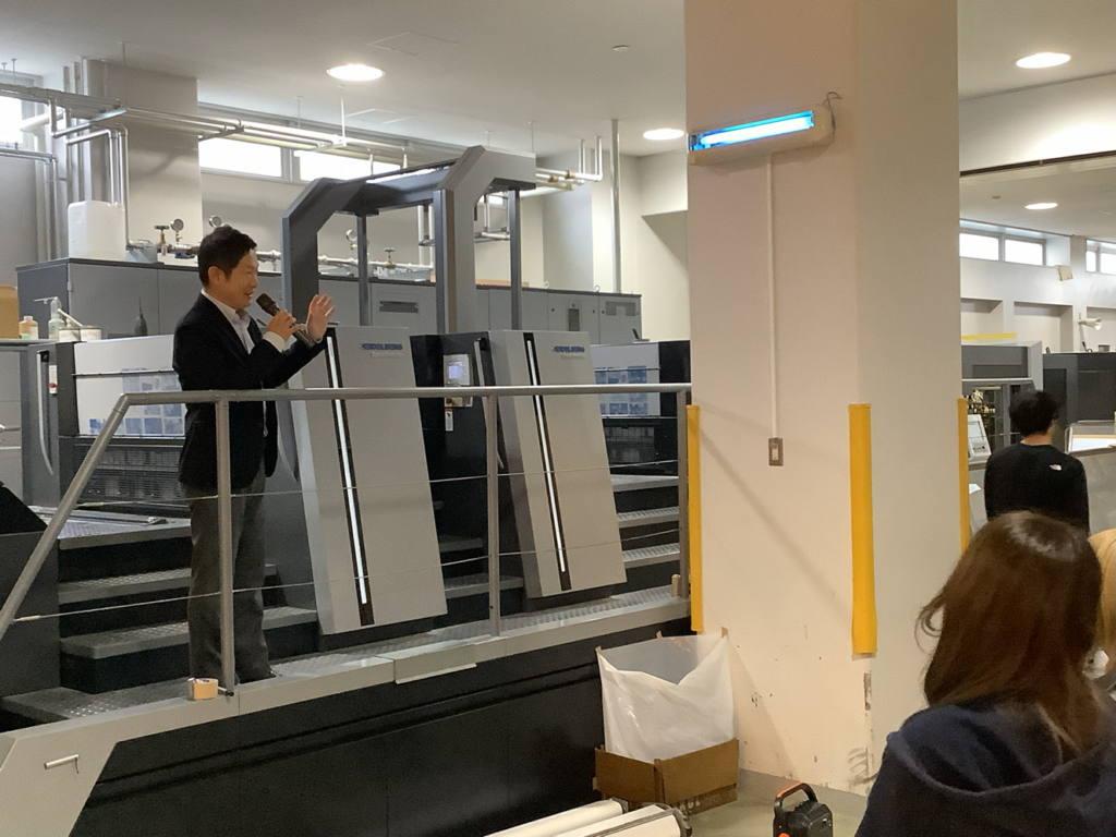 印刷部では、刷り出し→デジタル検版→本刷りの印刷フローや、各印刷機のご紹介をしました。