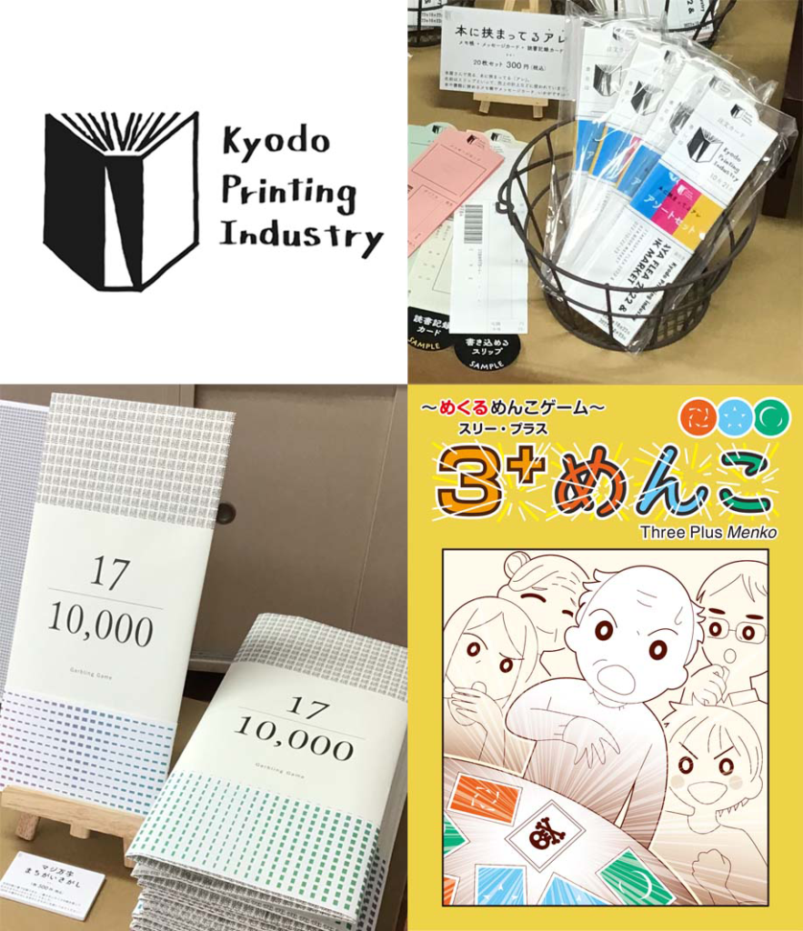 一度は目にしたことのある「本に挟まっているアレ」や、印刷機資材をリユースした「ブランコースター」、四六全判のおおきな紙に1万字を印刷した「マジ万字まちがいさがし」、めくってかえす新しいめんこのゲーム「スリープラスめんこ」などなど、多数のオリジナル商品をご用意してお待ちしております。